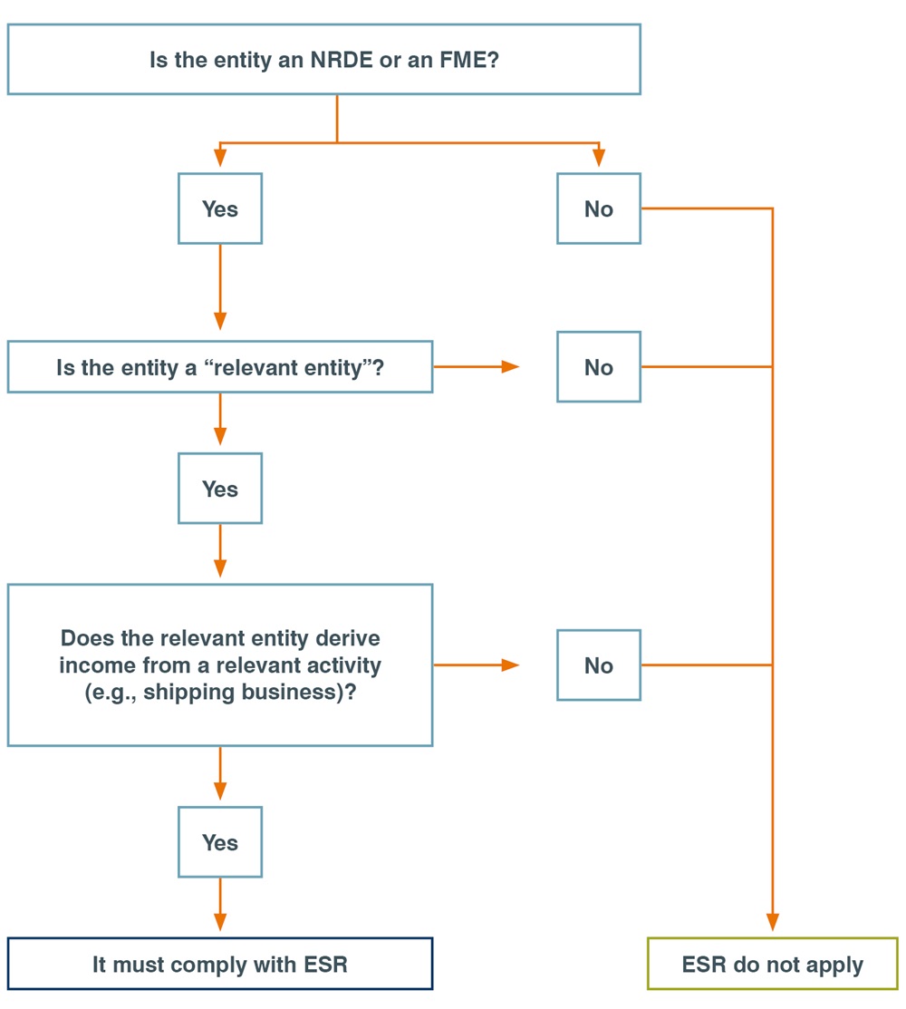 The requirements for determining whether the ESR apply to an entity are summarized by the following diagram: